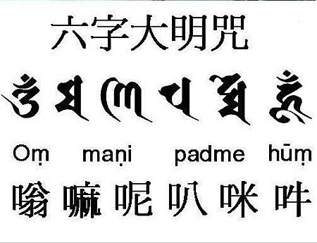 觀音菩薩心咒六字大明咒,六字箴言:![]()